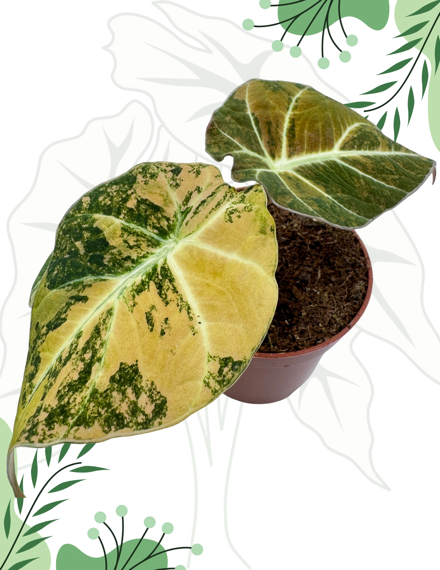 Alocasia Black Velvet Gold to rzadko spotykana, kolekcjonerska odmiana, która zachwyca połączeniem głębokiej zieleni i aksamitnej faktury liści z niezwykłymi, złocisto-limonkowymi przebarwieniami. To roślina, która łączy elegancję i egzotykę, przyciągając wzrok z każdej strony.