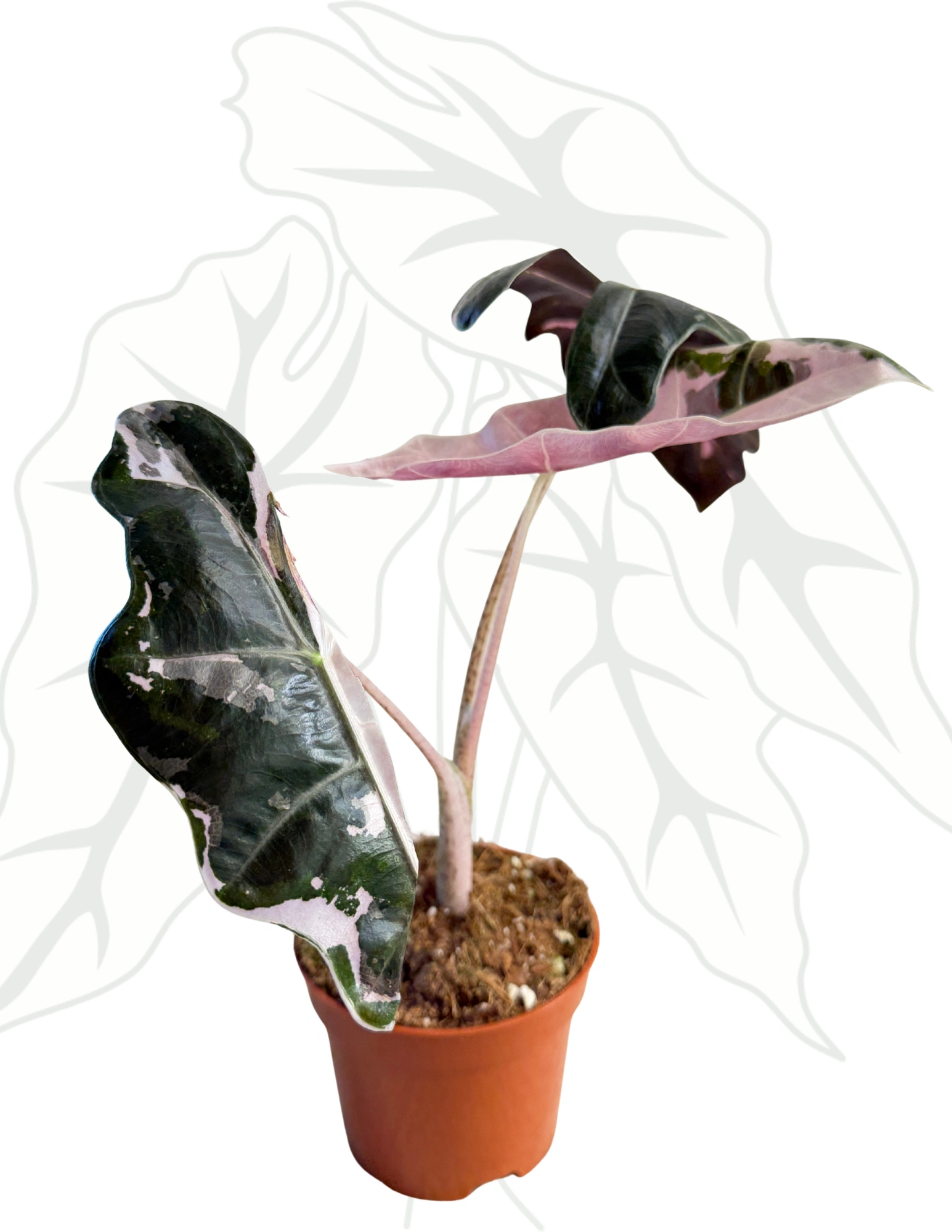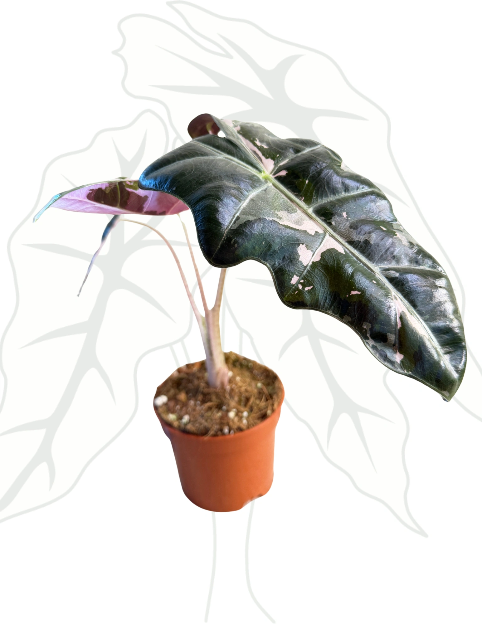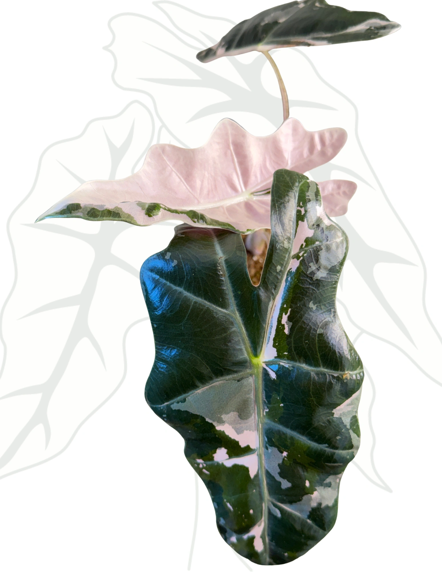 To odmiana dla osób, które lubią mocny rysunek liścia. Pseudo Sanderiana Pink łączy klasyczny, wydłużony kształt inspirowany sanderianą z wyraźnym, jasnym unerwieniem i subtelnym, różowym tonem – najczęściej widocznym na ogonkach lub przy nerwach.