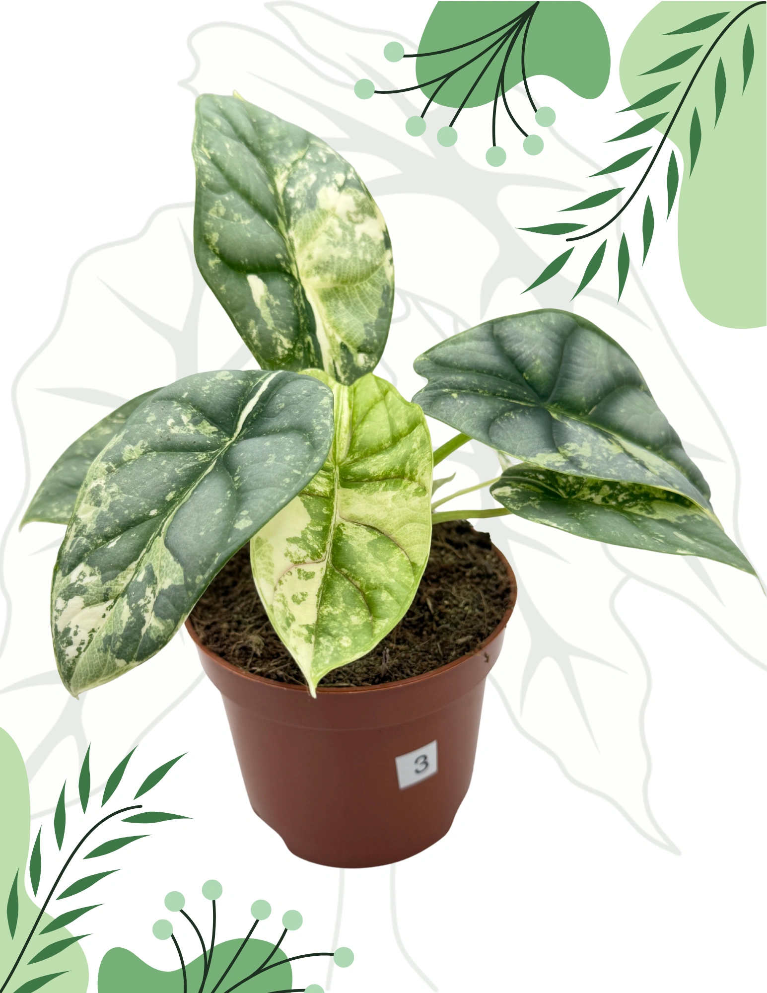 Alocasia Silver Dragon Albo to niezwykle efektowna odmiana, która zachwyca wyjątkowym kontrastem – srebrzysto-zielone liście typowe dla „Silver Dragon” zostały ozdobione spektakularną, białą wariegacją. Każdy liść ma niepowtarzalny wzór, przypominający dzieło sztuki natury. To perełka kolekcjonerska, która wyróżnia się nawet w najbardziej wyszukanych kolekcjach.