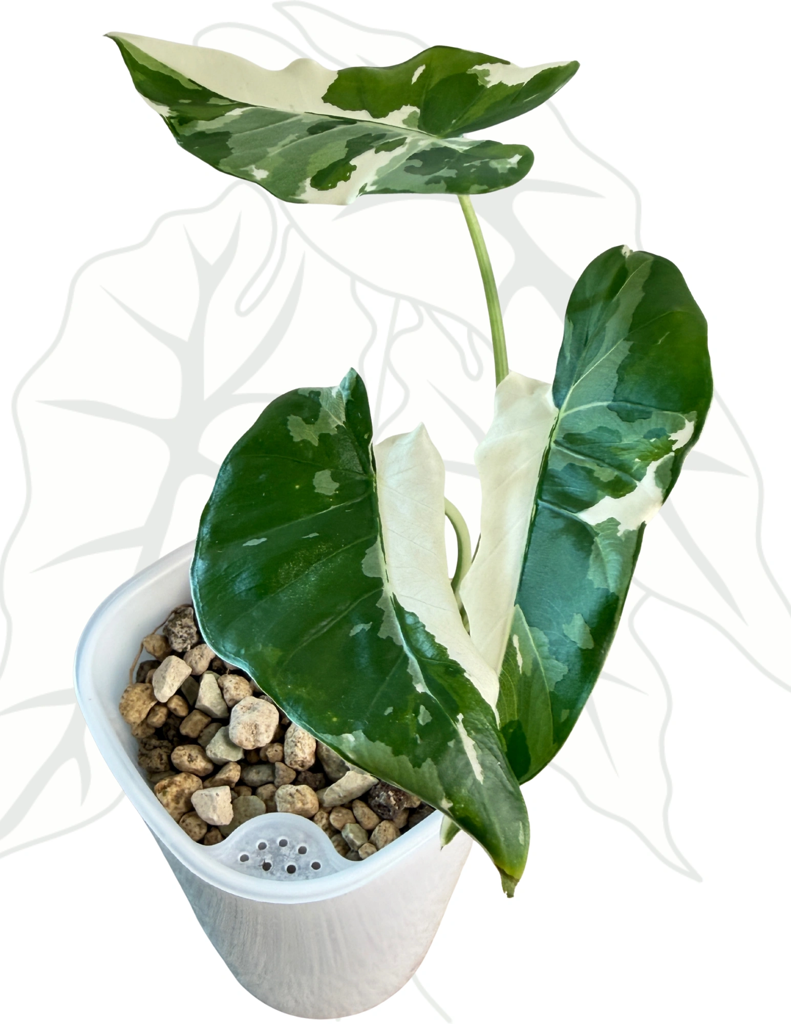Alocasia Okinawa Silver Variegata to idealny wybór dla tych, którzy szukają tropikalnej elegancji z nutą wyjątkowego blasku. Jej srebrzyste liście i egzotyczny wygląd sprawią, że stanie się centralnym punktem każdej kolekcji roślin domowych.