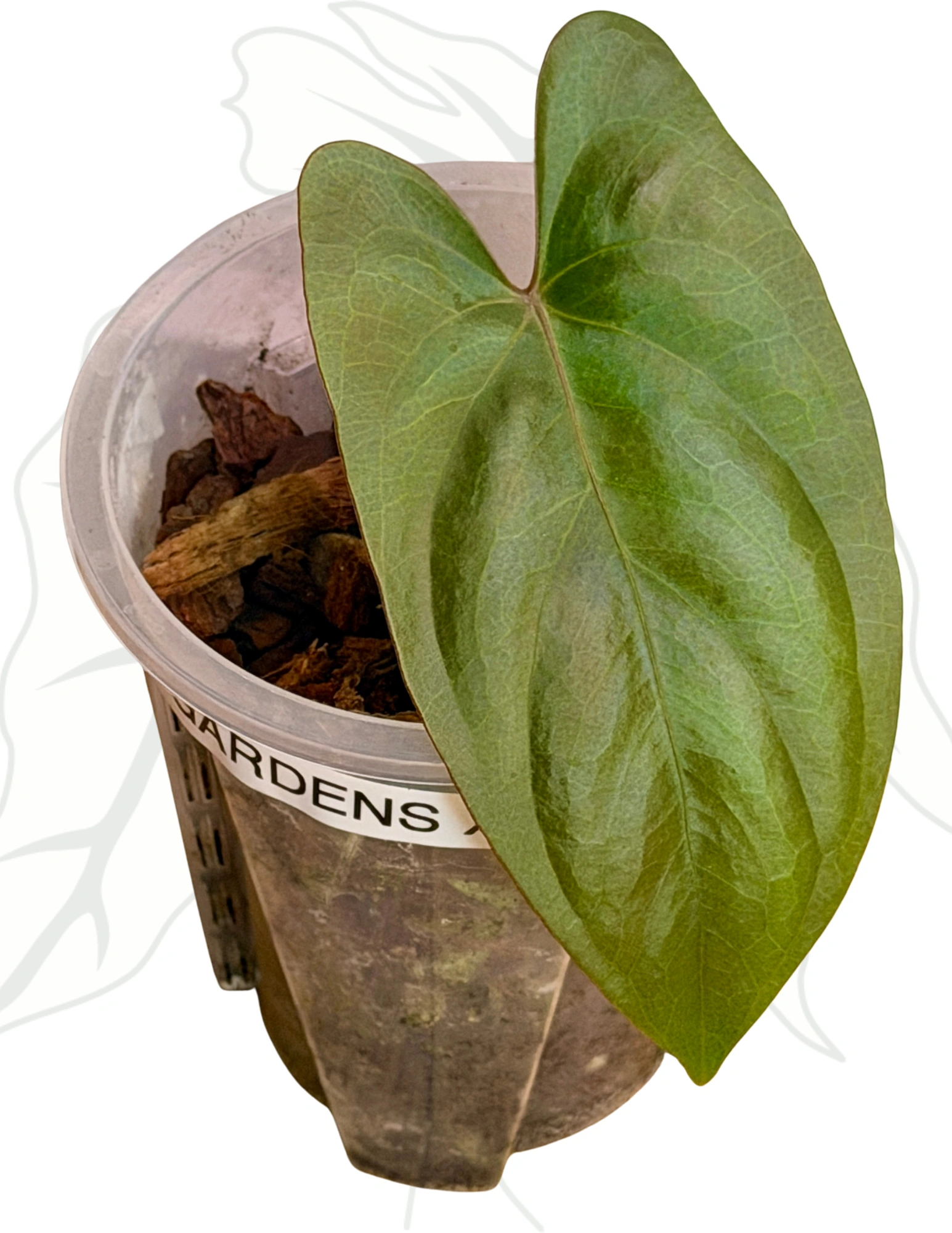 Anthurium Ree Gardens x Sp. Napo to wyjątkowa, kolekcjonerska hybryda łącząca w sobie najlepsze cechy obu gatunków rodzicielskich. Charakteryzuje się wydłużonymi, sercowatymi liśćmi o gładkiej, lekko połyskującej strukturze i głębokim, szmaragdowym odcieniu. Młode liście rozwijają się w ciepłym, czerwonobrązowym tonie, nadając roślinie niezwykle dekoracyjny wygląd.