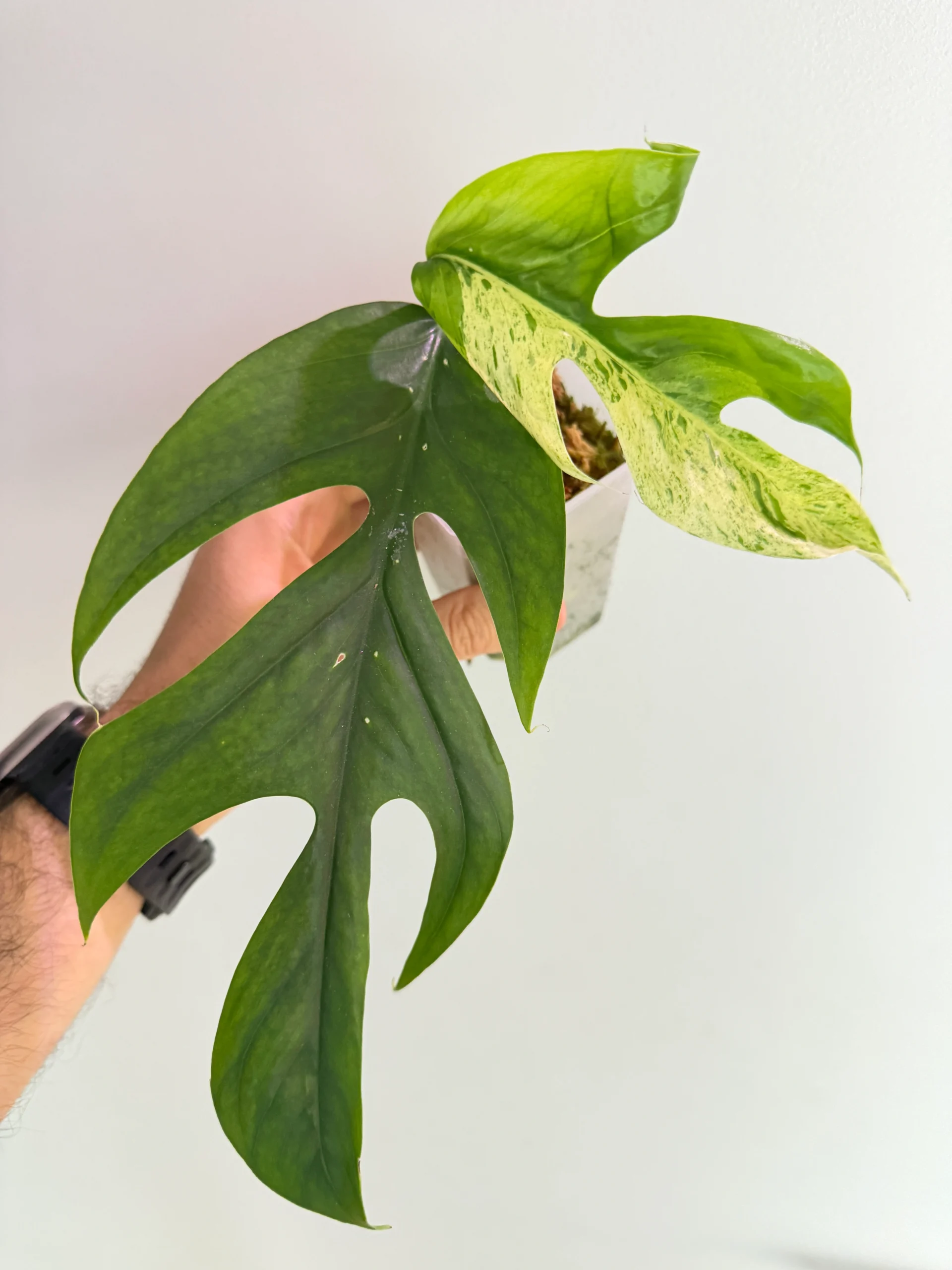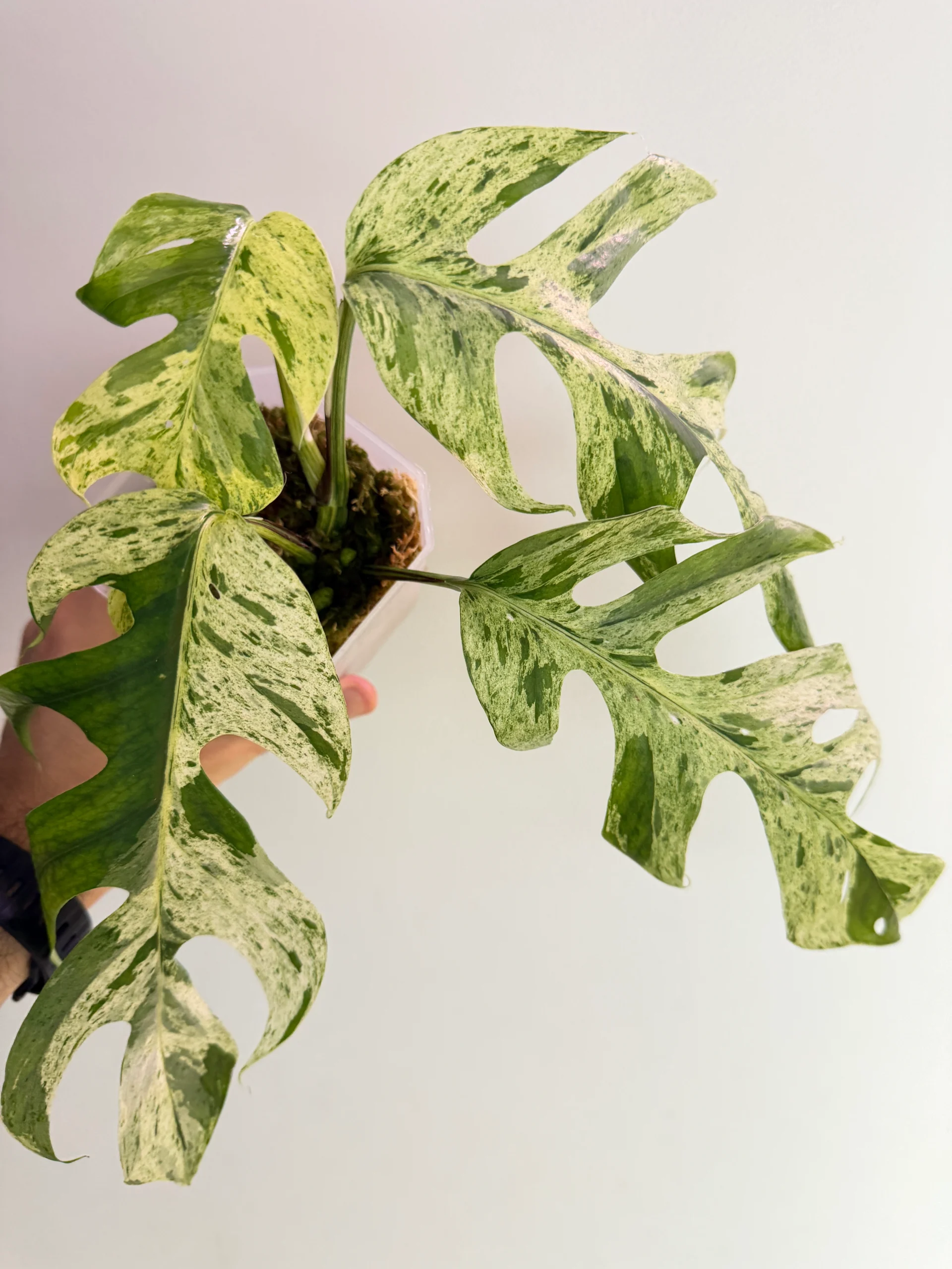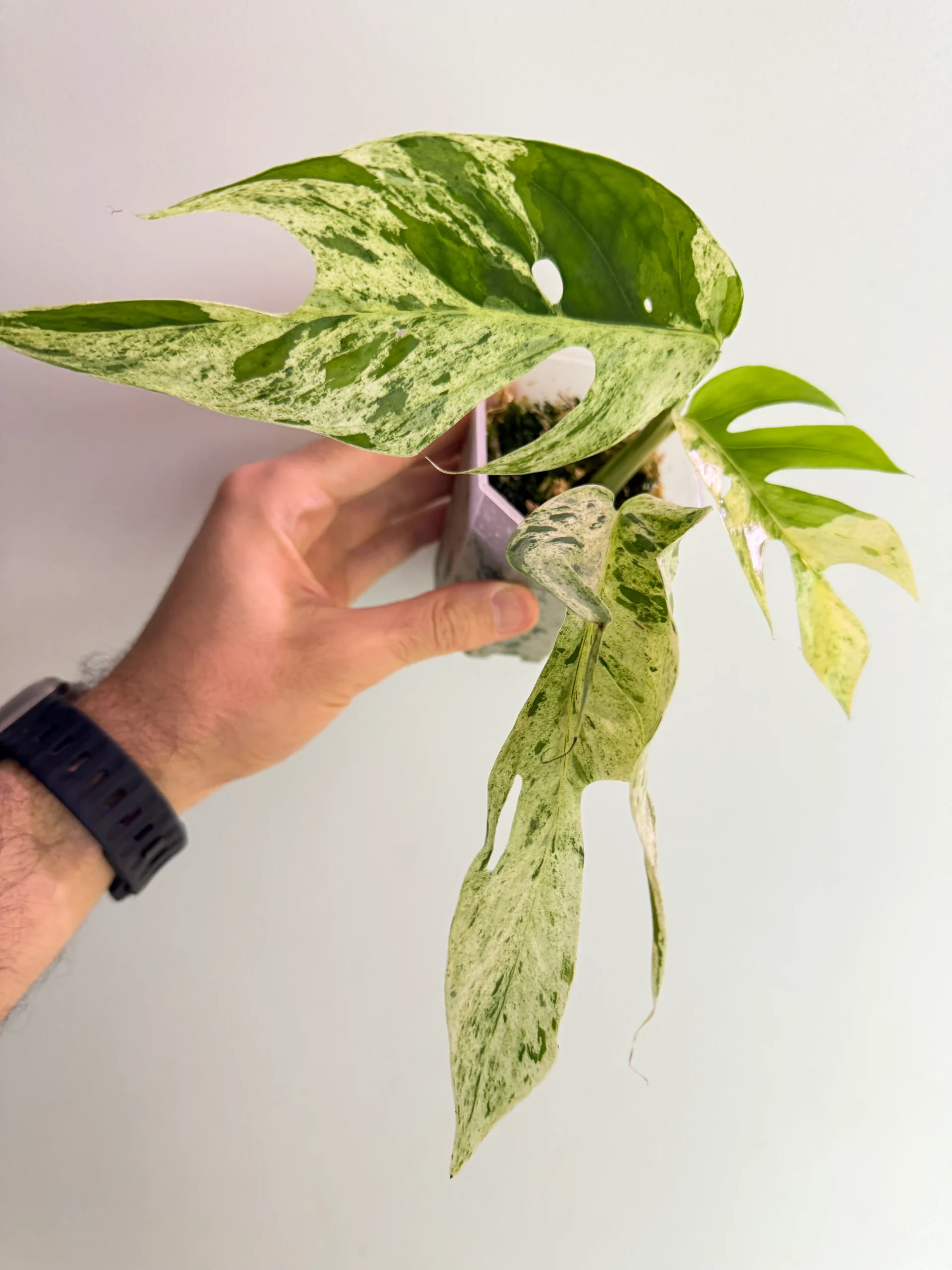 Epipremnum pinnatum ‘Marble’ to wyjątkowa, kolekcjonerska odmiana pnącza, która zachwyca swoim marmurkowym wzorem na liściach. Zielone liście przeplatają się z białymi, kremowymi i jasnozielonymi przebarwieniami, tworząc efekt przypominający delikatny marmur. To roślina, która łączy w sobie elegancję, łatwość w uprawie i tropikalny charakter.