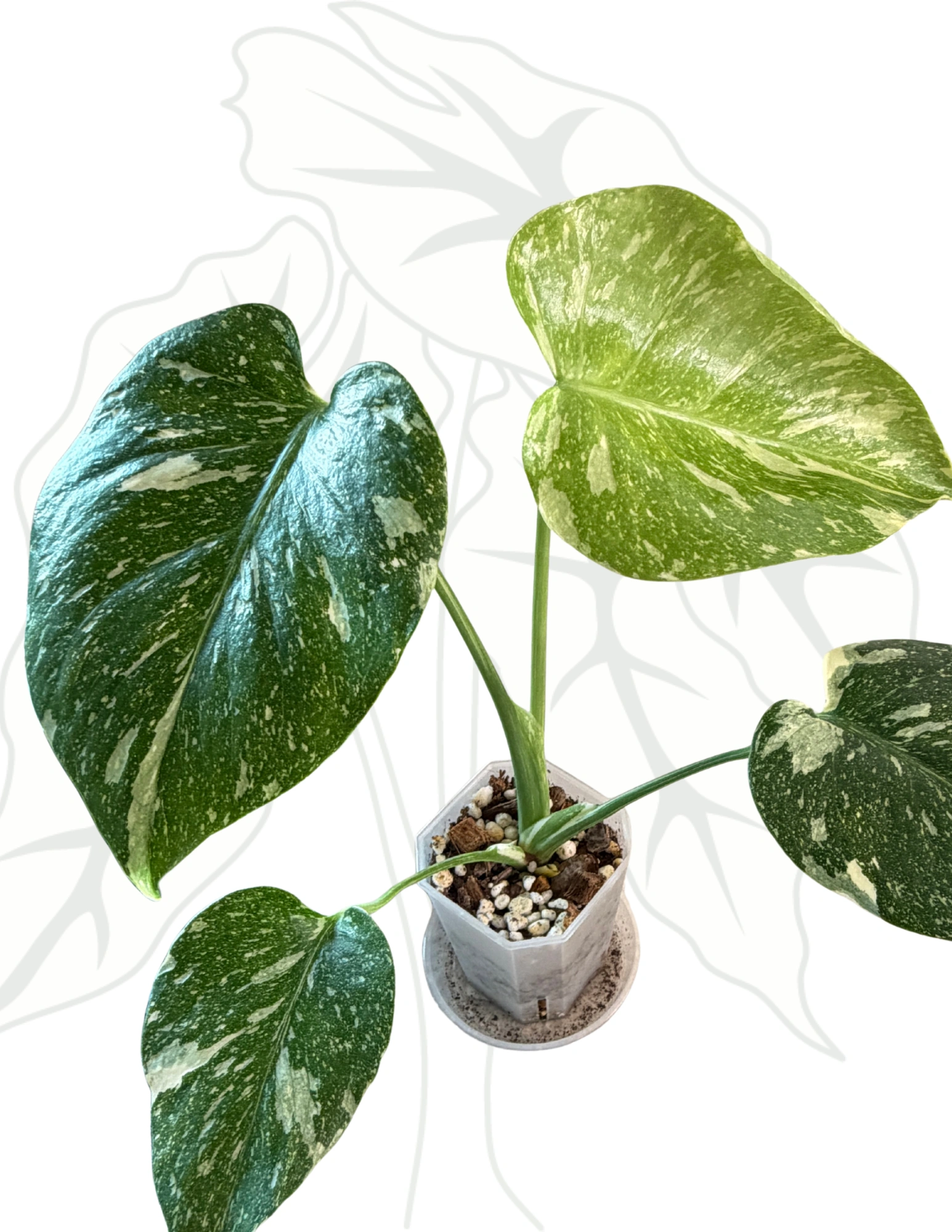 Monstera Thai Constellation to jedna z najbardziej spektakularnych i pożądanych roślin kolekcjonerskich na świecie. Jej duże, sercowate liście zdobią kremowo-białe plamy i rozpryski przypominające konstelacje gwiazd na nocnym niebie – stąd nazwa „Thai Constellation”. To roślina, która zachwyca swoim egzotycznym urokiem i wyjątkową trwałością variegacji.