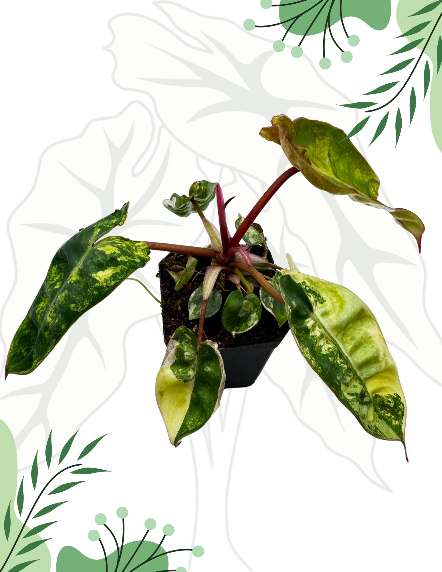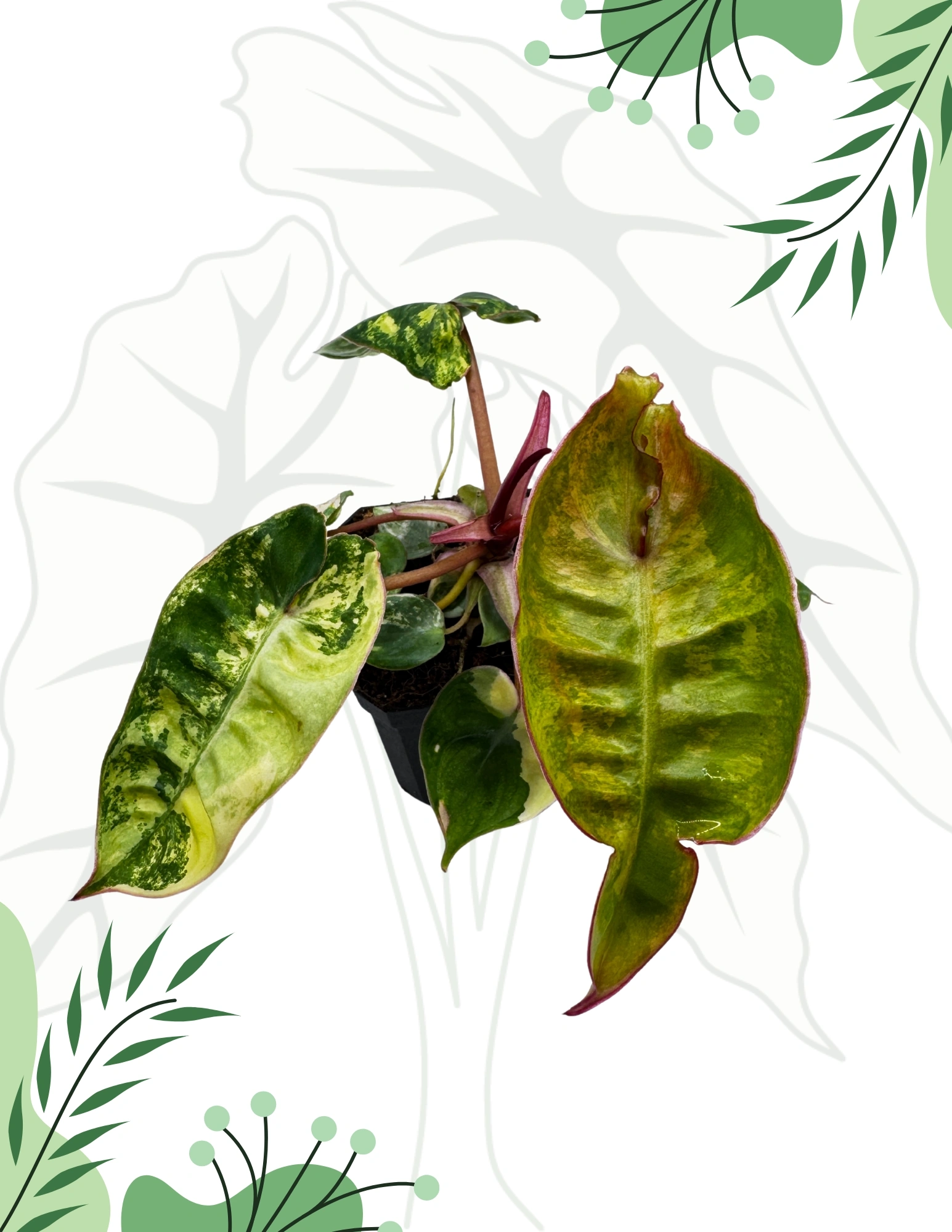 Philodendron Billietiae Variegata to niezwykle rzadka odmiana filodendrona, wyróżniająca się długimi, lancetowatymi liśćmi z efektowną, nieregularną wariegacją w odcieniach bieli, kremu i żółci. Charakterystyczne, pomarańczowe ogonki liściowe nadają roślinie jeszcze bardziej egzotycznego wyglądu, co czyni ją prawdziwą perełką w każdej kolekcji.