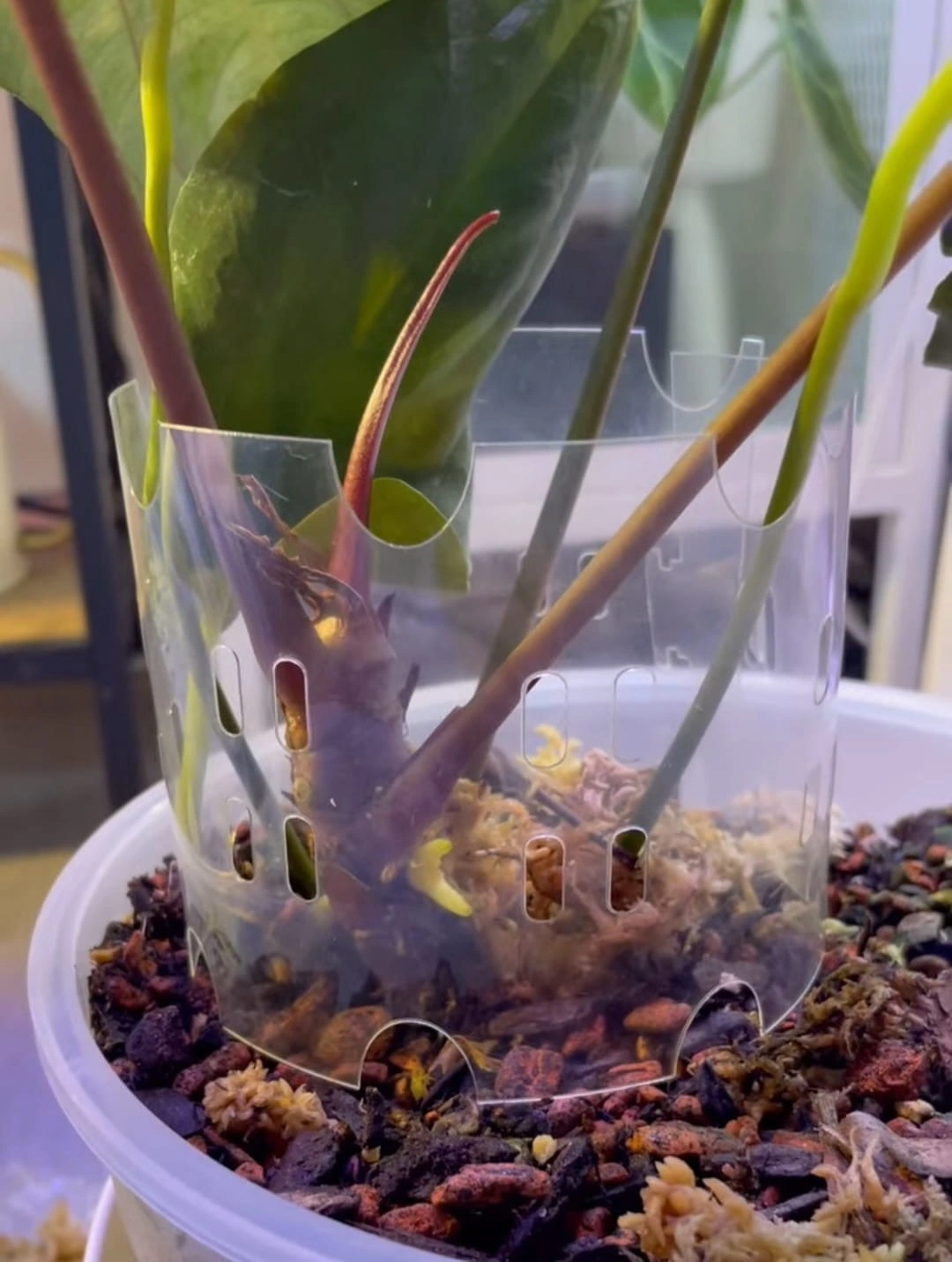 To innowacyjne przedłużenie doniczki zwiększa jej objętość, poprawia cyrkulację powietrza i wspiera lepszy drenaż – czyli wszystko to, czego potrzebują rośliny tropikalne, takie jak Anthurium, Philodendron, Monstera czy inne gatunki z wymagającym systemem korzeniowym.